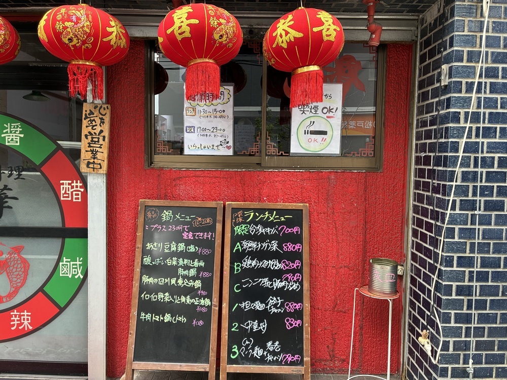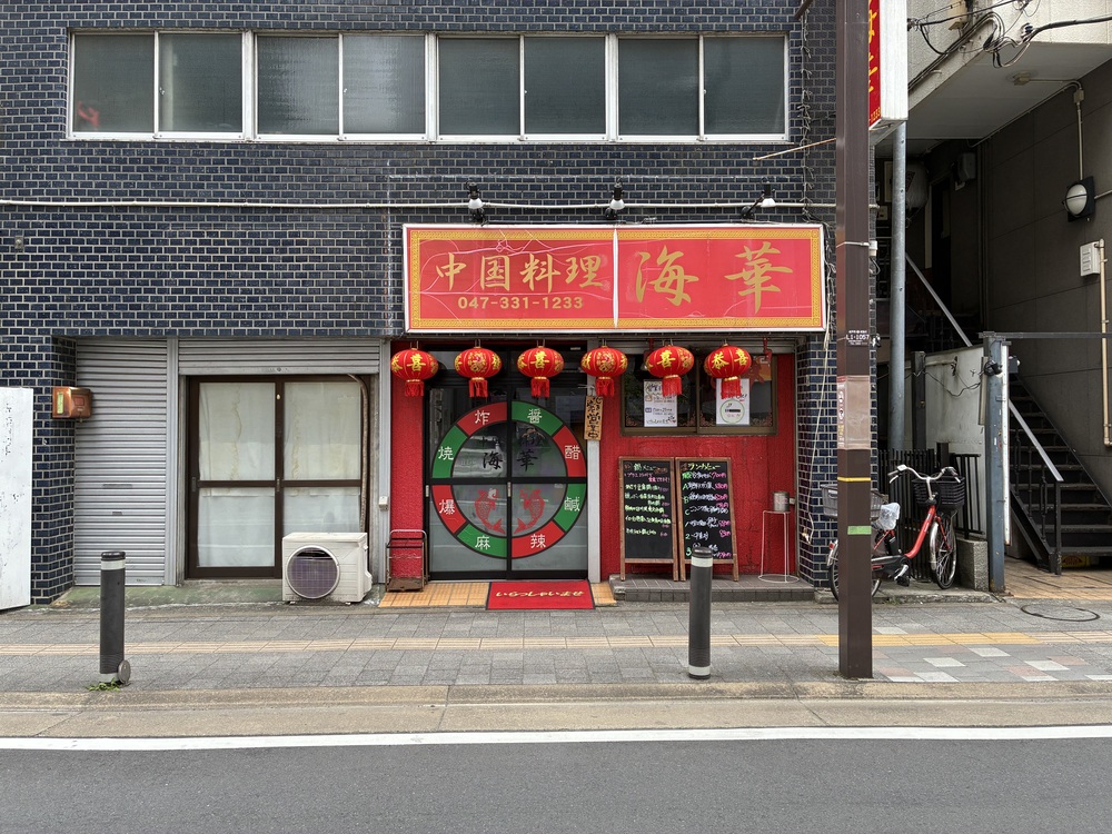 JR常磐線・新京成線の松戸駅東口から歩いて約3分ほど。通り沿いに見える赤と金の看板が「海華」の目印です。「中国料理 海華」と大きく書かれた看板の下には、赤い提灯がずらりと並んでいて、まるで本場中国の食堂に迷い込んだかのような雰囲気です。