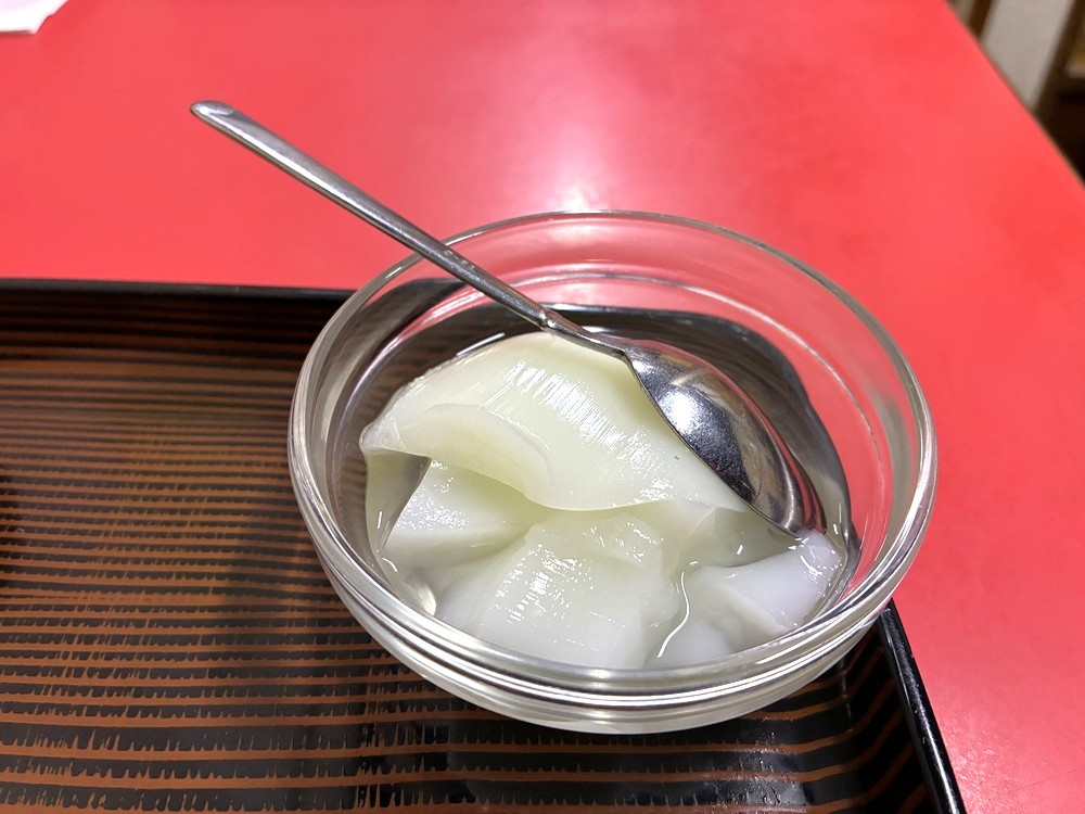 ちなみに、セットのデザートは日によって杏仁豆腐やゼリーなど内容が変わるようです。この日は杏仁豆腐をいただきましたが、なめらかな口あたりでさっぱりとしていて、濃い味の中華料理のあとにぴったりの締めくくりでした。食後のちょっとした甘みで、満足感がぐっと高まりますよ。