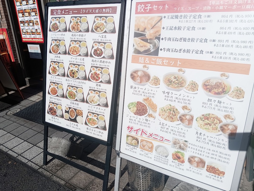 画像の通り、王記餃子は定食メニューの充実がすごいんです!