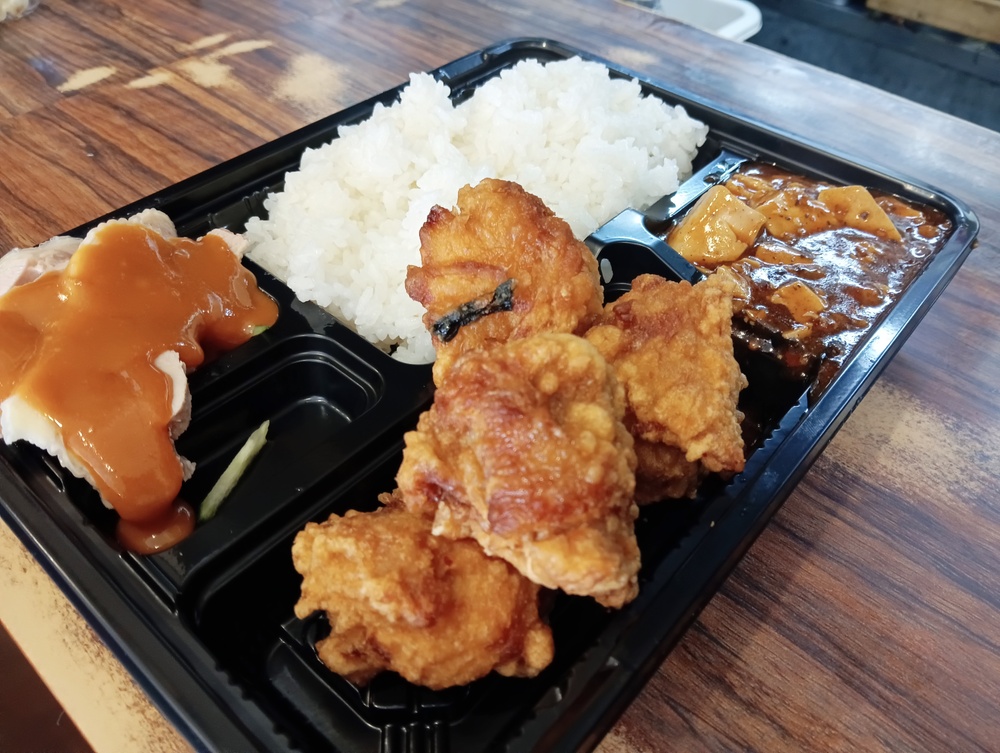 店員さんから「唐揚げですか?ご飯ですか?」と聞かれます。いっぱい食べたい人は、ぜひ元気よく「両方で!」といってくださいね!