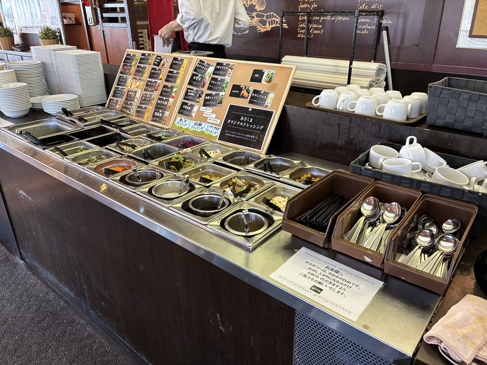 あさくまの最大の魅力は、なんといっても充実したサラダバー。メインのステーキやハンバーグを注文すると、このサラダバーが食べ放題で付いてきます。