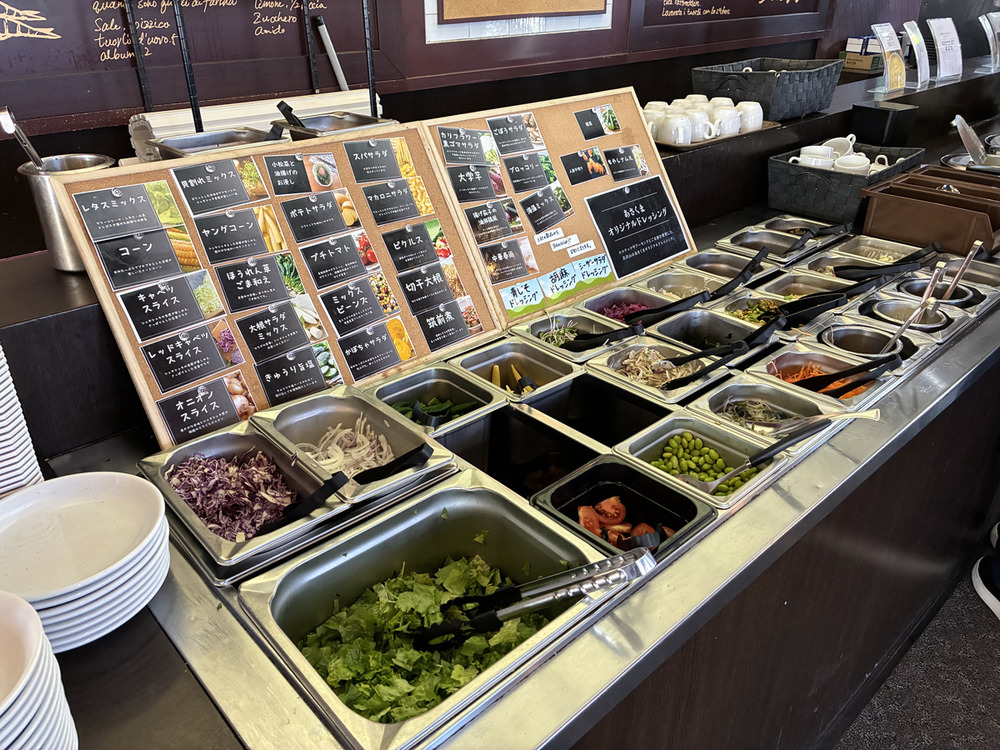 サラダバーには新鮮な野菜がずらりと並んでいます。