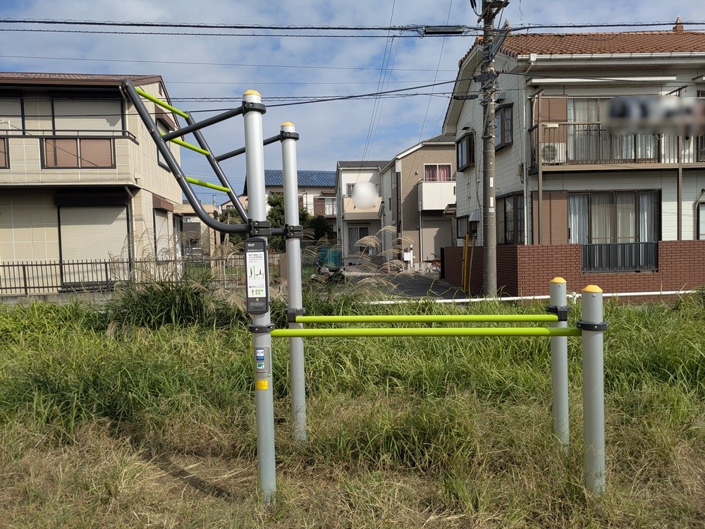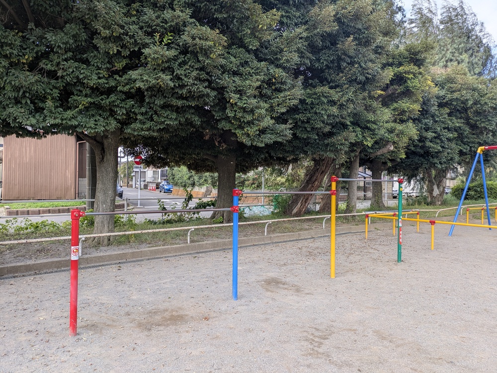 公園のすみに、ひっそりと健康遊具が設置してあるのを見つけました。