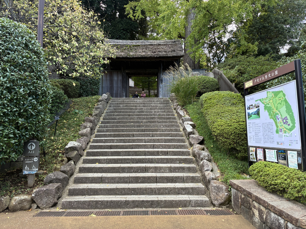 「ここは何だろう?」と思って近づくと、「戸定ヶ丘歴史公園(とじょうがおかれきしこうえん)」という看板が。調べてみると、水戸徳川家の最後の藩主・徳川昭武が造った別邸と庭園が残されている場所でした。