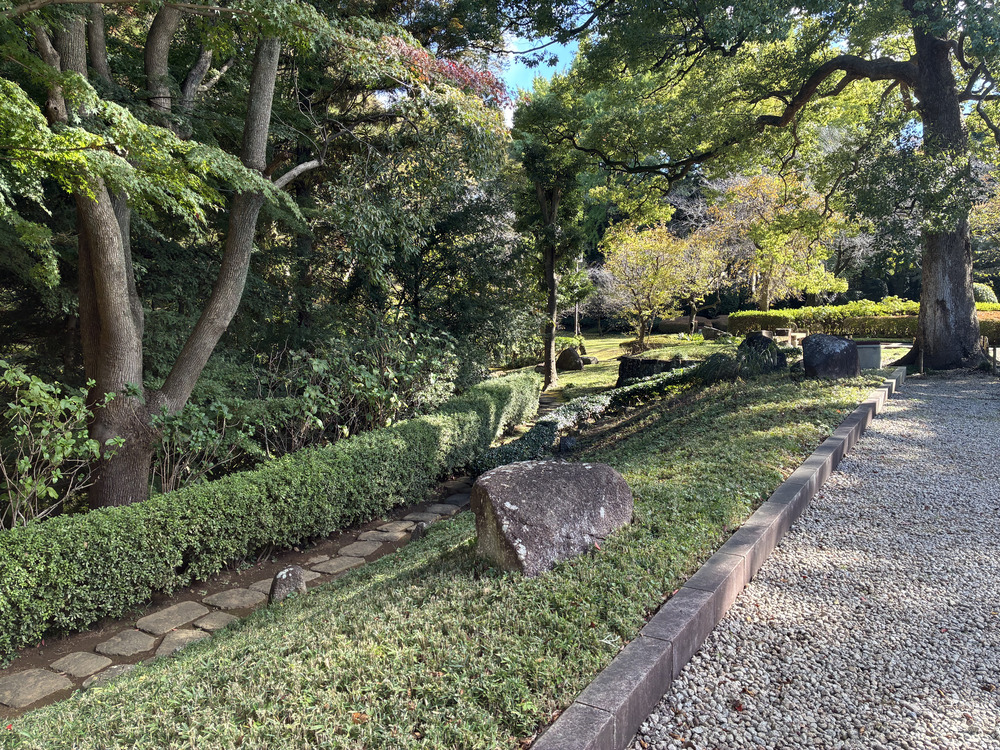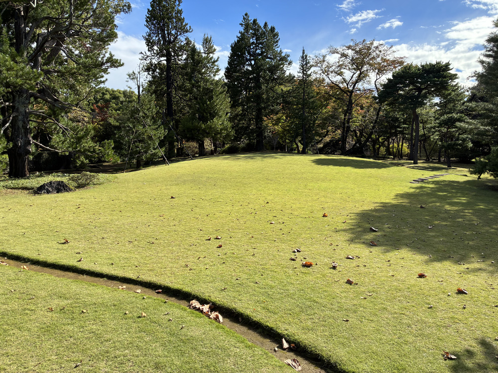 もうひとつは「東屋庭園」。こちらは広々とした芝生が特徴の洋風庭園です。