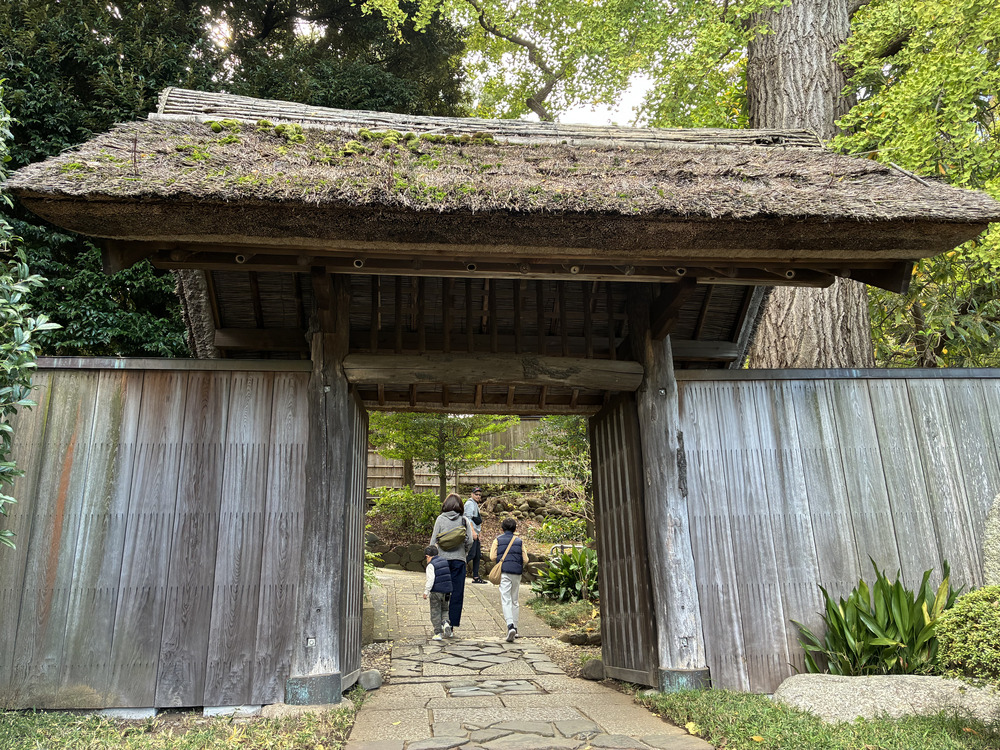 松戸駅から「戸定みその坂」という坂道を上っていくと、まず目に飛び込んでくるのが茅葺門。この門をくぐると、まるで別世界に来たかのような静けさに包まれました。