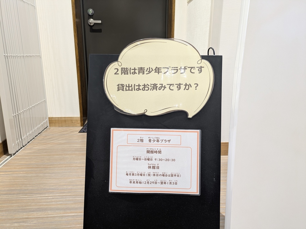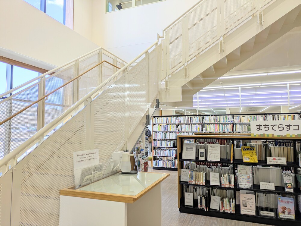 図書館で借りた本を、内階段を使ってそのまま青少年プラザに持ち込むことができるようなのです!