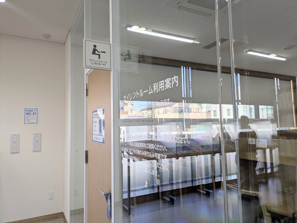 こちらは、サイレントルーム。図書館利用カードを持っている方が使うことができます。静かに利用したい方、集中したい方には、便利ですね。