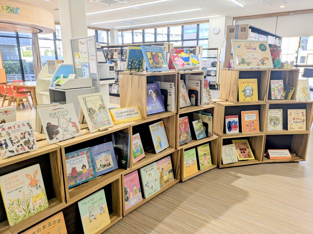 館内に入ると、真っ先にフェアの展示が目に入ります。訪問時には、「おめでとうがいっぱい」ということで、誕生日を題材とした本が展示されていました。