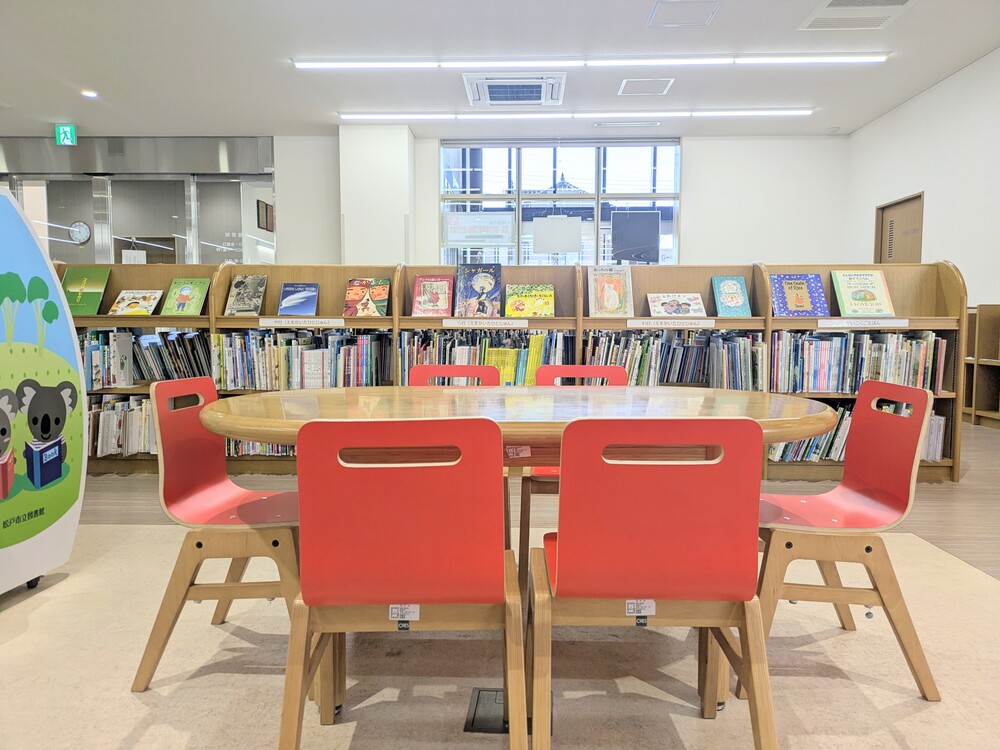 絵本コーナーの近くには、小さな子も座りやすい椅子があるので、座って絵本を読むこともできます。よく座って一緒に本を読んでいる親子を見かけます。