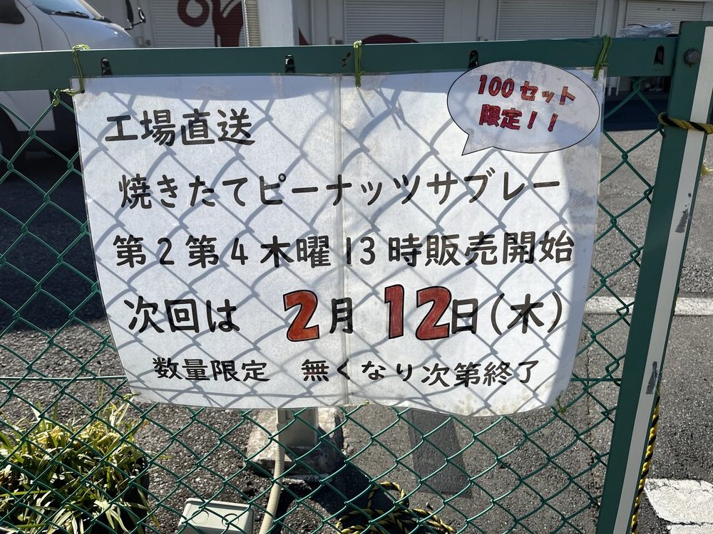 初めて知りました!私はまだ食べたことがないのですが、工場直送の焼きたてピーナッツサブレーが日にち限定で購入できるそうです!